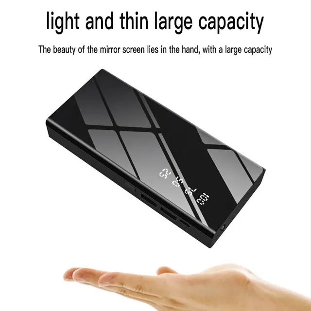 1.[Micro-USB Input Portable Charger]: Dual USB output, which can charge 2 devices at the same time, practical and convenient. 2.[Battery Pack With Full LCD Design]: Tell the remaining power all the time with mirror-like look and cellphone size. 3.[Power Pack’s Smart Protection Technology]:Power Pack equips smart protection system,over charging,over voltage,over current,making charging safer. Capacity and Parameter Input: DC 5V 1A (Max) Output1: DC 5V 2.1A (Max) Output2: DC 5V 1A (Max) Length * Width * Height : 140*62*22 mm LCD digital display: The remaining power is clear at a glance. Easy to operate: Only one power button needed to be press when the information of LCD needed to be seen. Led flashlight: Double-click the power switch to turn it on/off. Packing: 1 x Power Bank 1 x User Manual 1 x Packing box 1 x Micro USB cable 1 x USB light